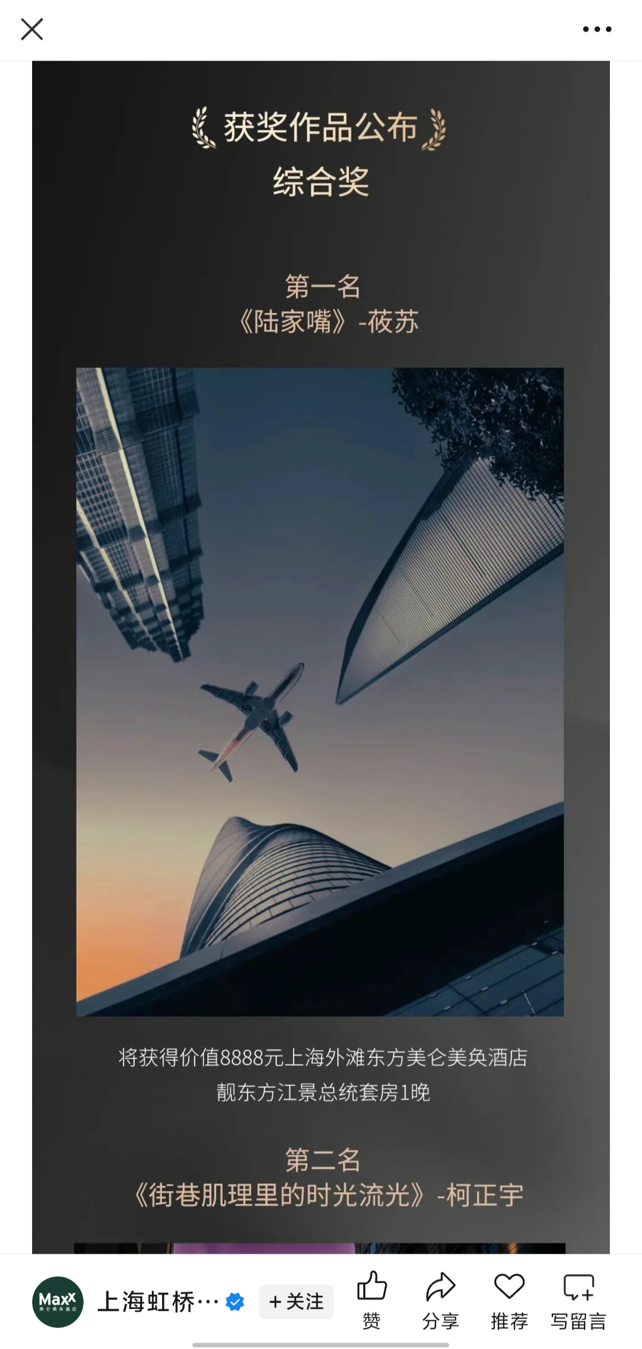 根据帖子信息,记者搜索到这项名为“艺术MaxX·城市记忆摄影大赛”比赛,在华住会旗下上海东方美仑美奂酒店和华住美好家族官方公众号均有宣传。