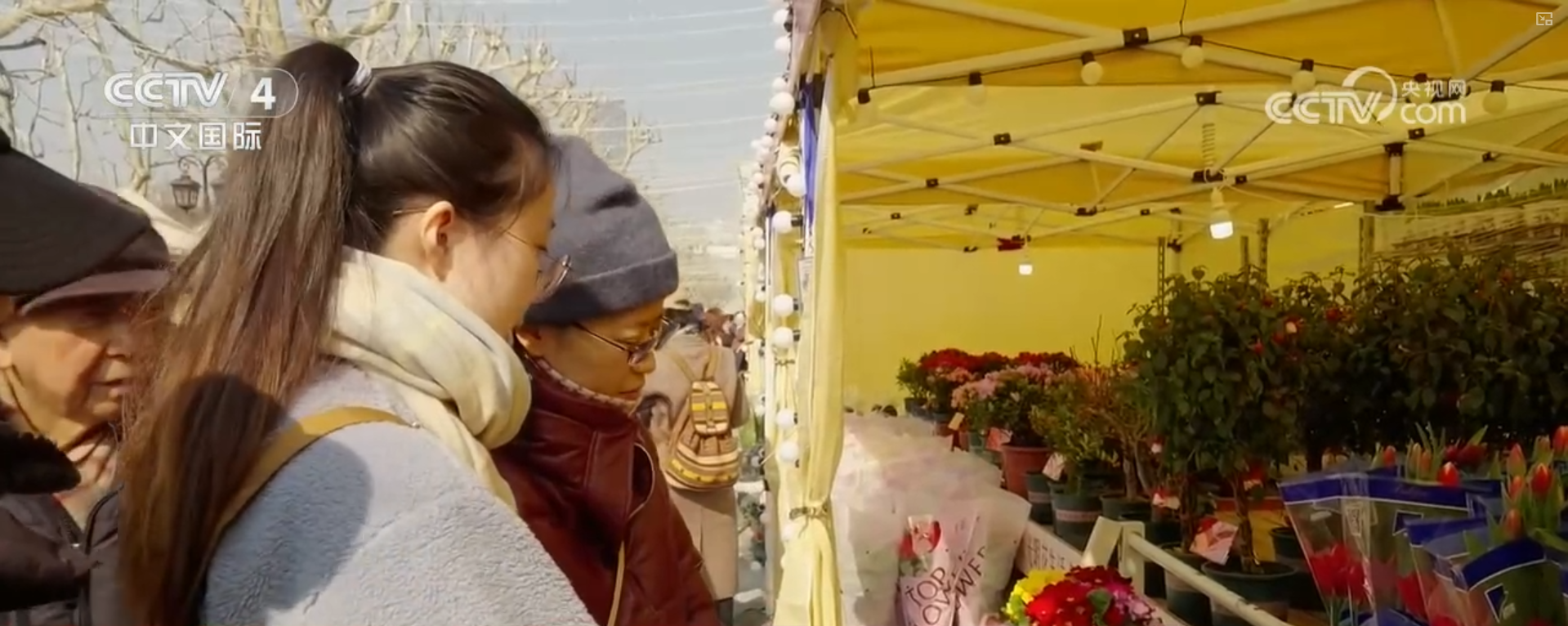 来到上海复兴公园,一处热闹的花市吸引了市民前来选购年宵花卉,为家中添上节日的喜气。